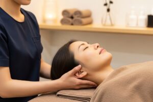 また、当サロンの「眠りの頭ほぐし®」では、頭皮だけでなく耳周りや顎関節付近にもアプローチを行います。食いしばりや歯ぎしりの癖がある方は、顎周辺の緊張が側頭筋を通じて肩こりにつながっているケースも少なくありません。こうした複合的な原因に対して、一度の施術で多角的にケアできる点がヘッドスパの大きな強みです。